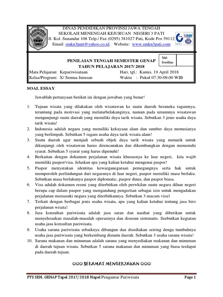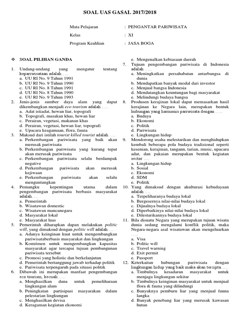 Doc Lembar Soal Uts Pengantar Pariwisata Sri Handayani Academia Edu