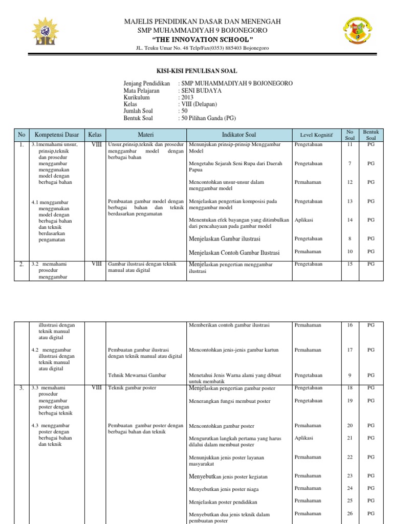 Homepage Bank Soal Kisi-Kisi dan Soal PAS Seni Budaya SMP Semester 1 Kelas 7 8 9 Kurikulum 2013 Kisi-Kisi dan Soal PAS Seni Budaya SMP Semester 1 By Administrator Posted on November 22 2020 November 22 2020. Contoh soal akm smp kelas 8. Soal dan Jawaban PAT Seni Budaya Kelas 8 Kurikulum 2013 - Hallo sahabat Soal Pelajaran Pada Artikel yang anda baca kali ini dengan judul Soal dan Jawaban PAT Seni Budaya Kelas 8 Kurikulum 2013 kami telah mempersiapkan artikel ini dengan baik untuk anda baca dan ambil informasi didalamnya.