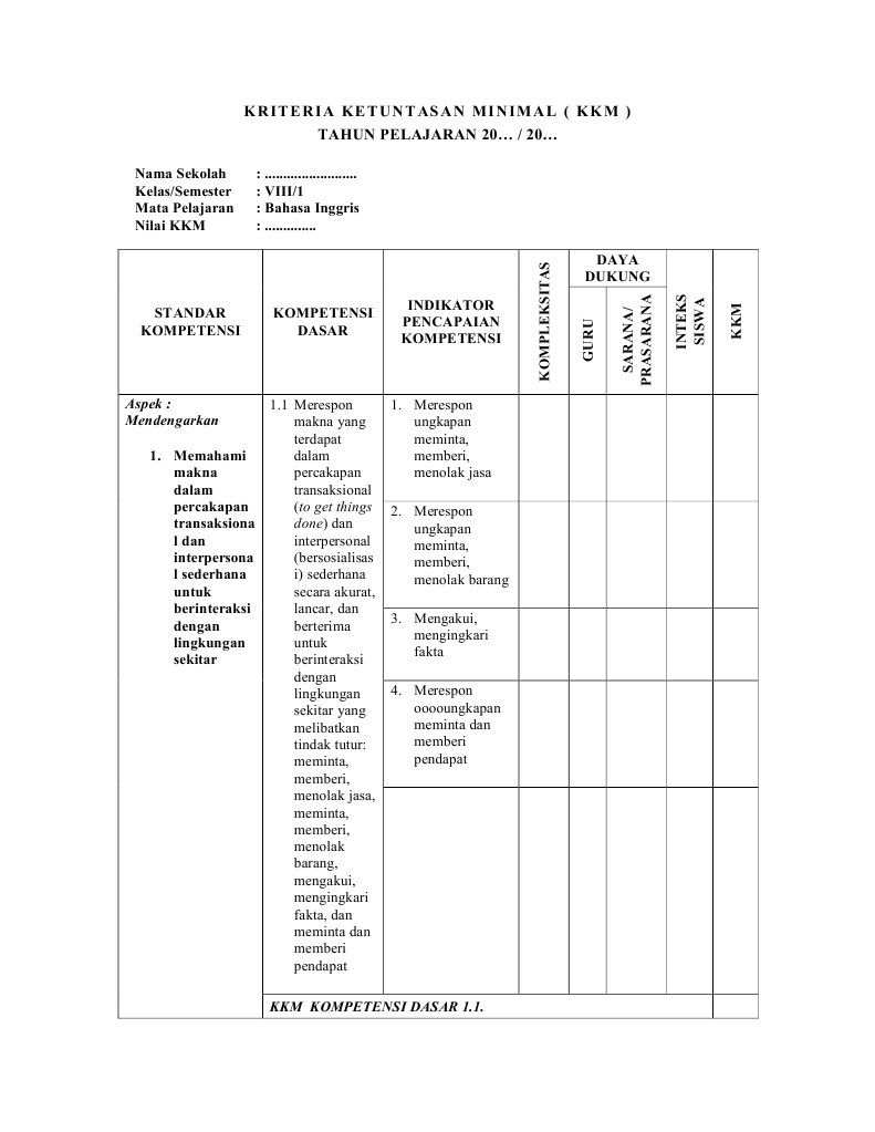 Contoh Kkm Bahasa Inggris Kelas 8 Kurikulum 2013