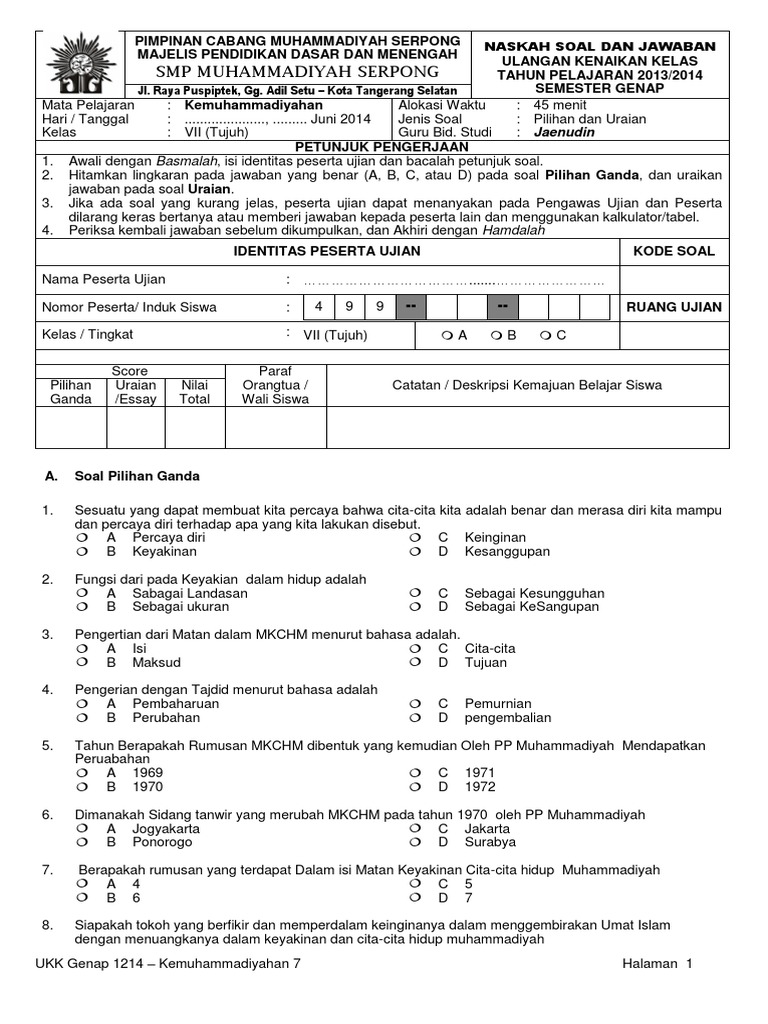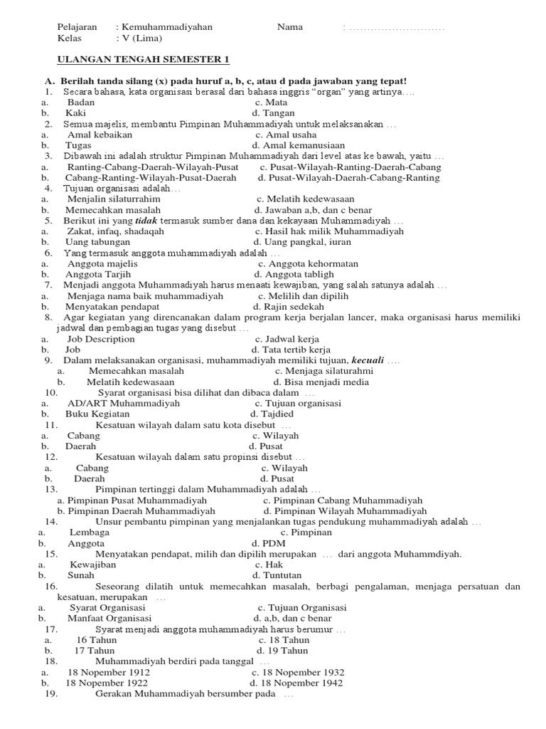 Kumpulan soal soal kemuhammadiyahan smp dapat didownload di sini. Evaluasi pada akhir. Apa tugas dan.