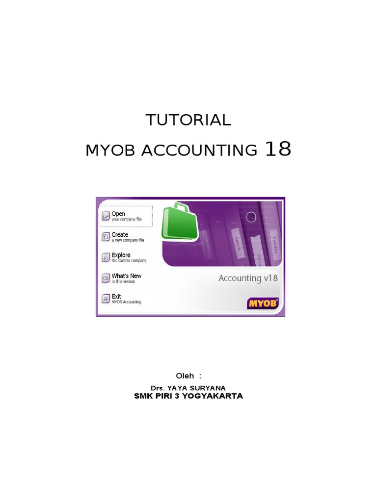 Berbagai versi terbaru dari Myob sudah di luncurkan. Membuka Program Myob Accounting 18 Berikut langkah-langkah untuk membuka program Myob Accounting 18 melalui sistem operasi windows 7. PDF Modul MYOB V18 Komplit Dengan Gambar Mudah Dipahami Dan Mudah Didownload.