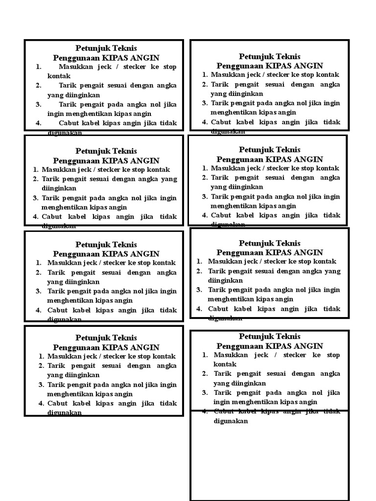 Tuliskan Teks Petunjuk Tentang Penggunaan Kipas Angin