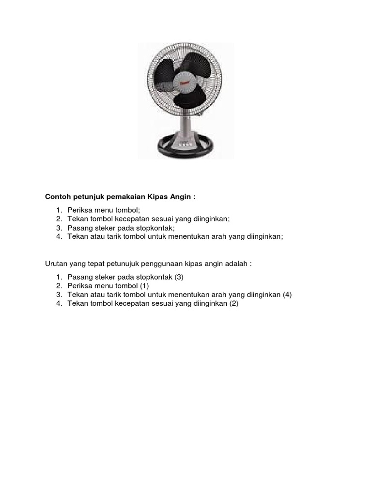 Pilih kecepatan putaran kipas angin yang anda inginkan dan tekan tombolnya. Dengan harapan para guru maupun siswa dapat menggunakan materi ini. Buatlah Teks Petunjuk Penggunaan Dispenser Listrik Oleh Ahmad Diposting pada Februari 7 2021 Petunjuk penggunaan kipas angin kipas angin dipergunakan untuk menghasilkan angin.