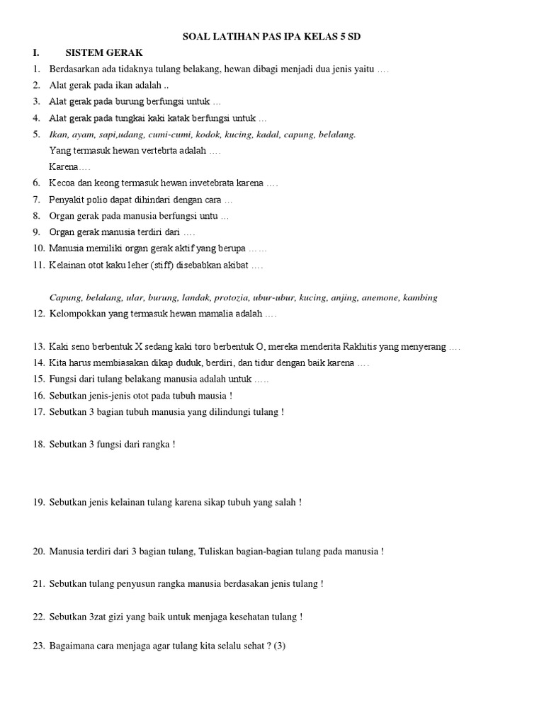 Contoh soal ipa kls 5 kelainan pada tulang. Contoh latihan Soal PTS UTS Tema 1 Kelas 5 Semester 1 K13 Tahun Ajaran 20192020. Soal sistem gerak pada manusia bagian 2 1. Soal dan jawaban tentang tulang manusia- 1.