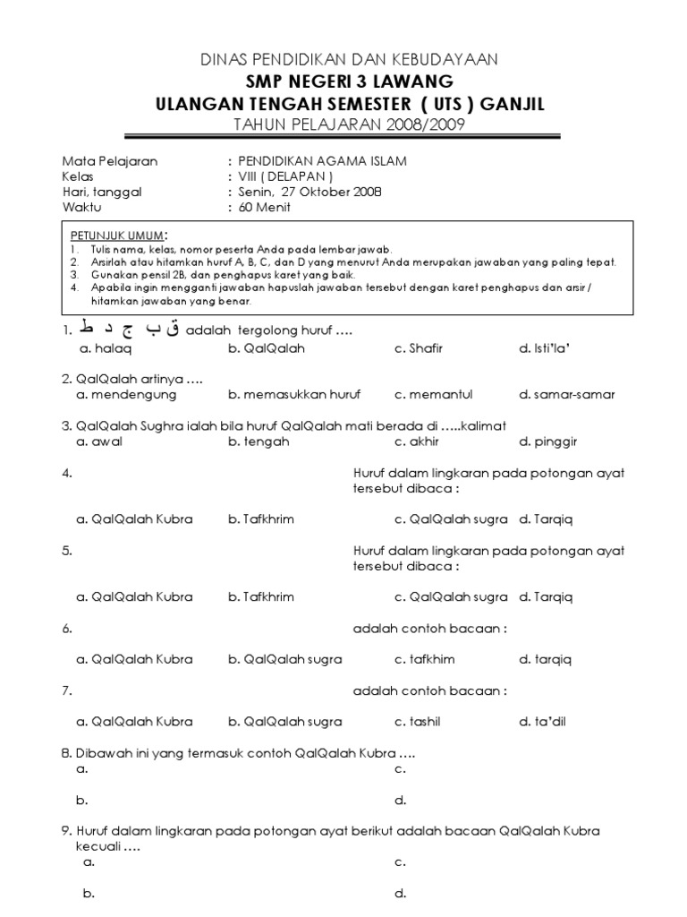 Soal Ulangan Agama Islam Kelas 8 Semester 2