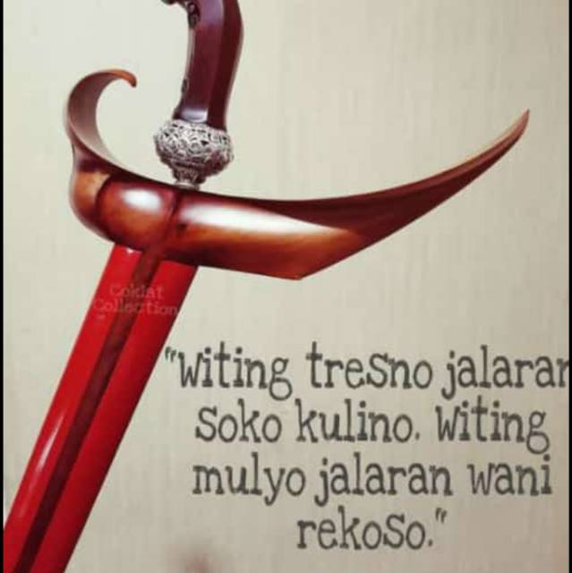 Witing tresno jalaran soko kulino. Sedangkan Witing Mulyo Jalaran Wani Rekoso maknanya Kemulyaan didapat karena berani untuk bersusahpayah.