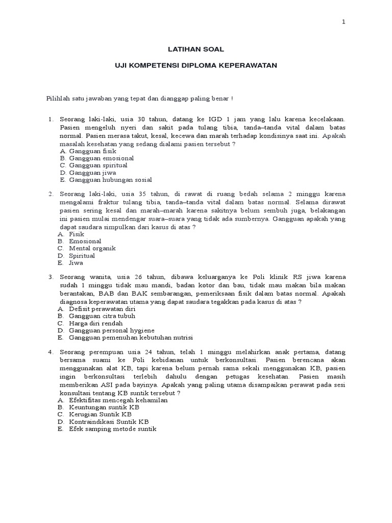 Contoh Soal Uji Kompetensi D Iii Keperawatan 2