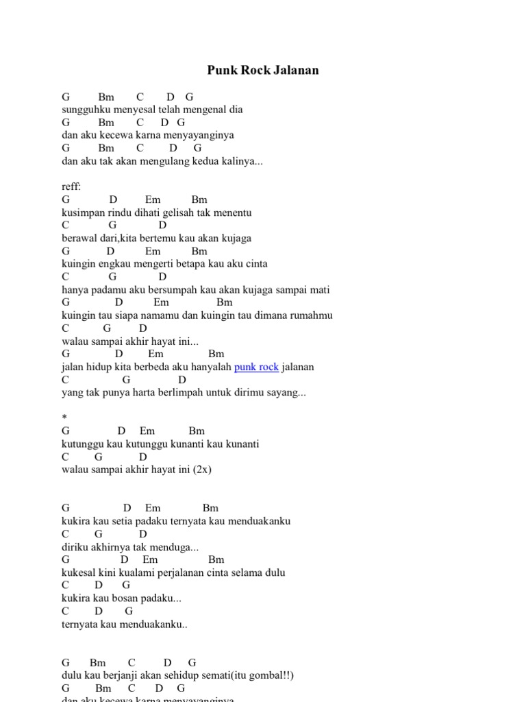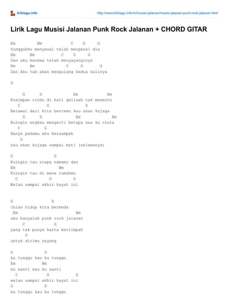 Indonesia punk takan pernah mati C G hanya satu tekad kami D G D Punk Street Indonesia G C D G alkisahNegri yang kaya tapi dijajah G C buruhnya di bayar murah D G D hingga anak gak bisa. Senin 12 Oktober 2020 1624 WIB. Blog kumpulan lirik dan chord gitar lagu PopRock Indonesia Barat dan Jepang.